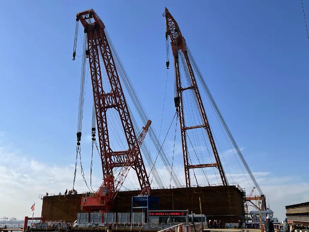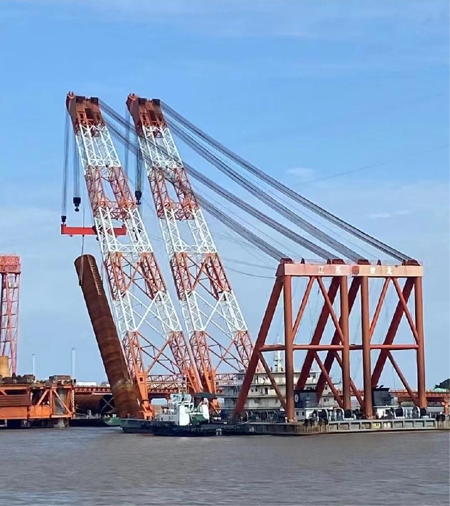 “秦航工1”甬舟公鐵大橋項目520噸鋼護筒吊裝