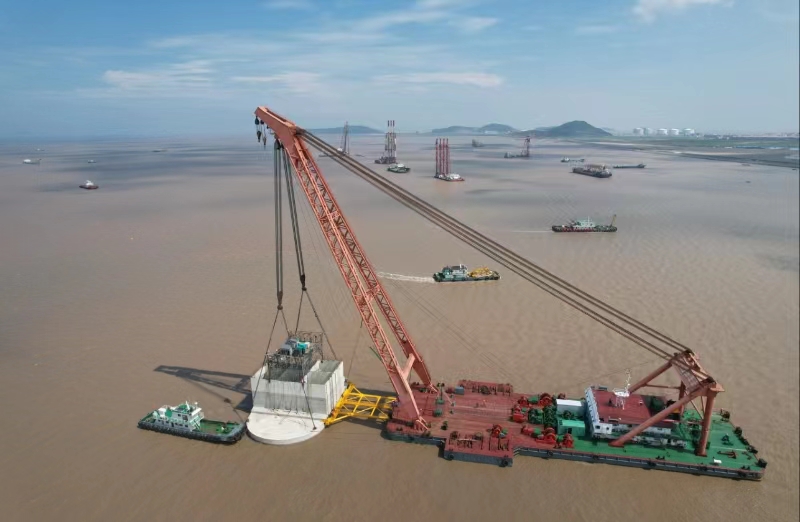 “秦航工66”上海小洋山北沉箱按裝