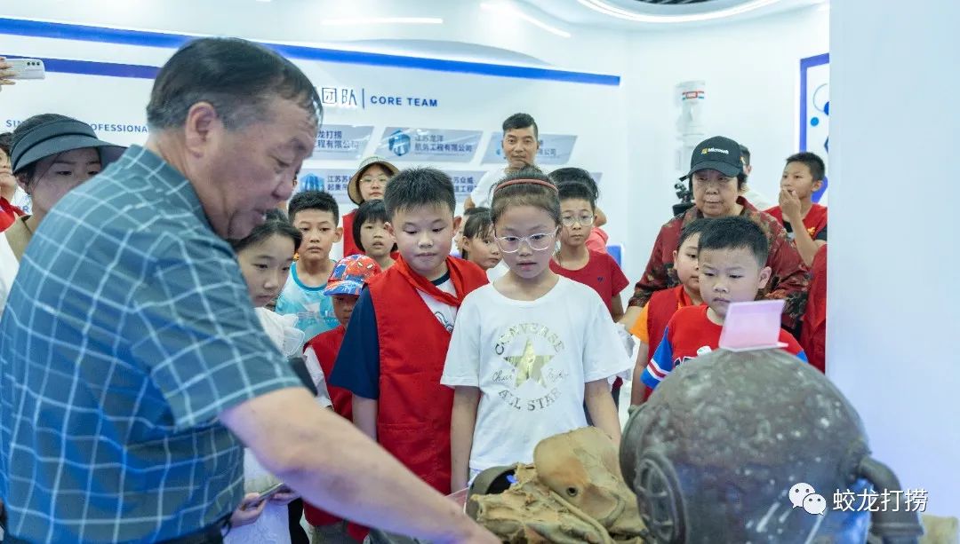 學(xué)生們還到海洋產(chǎn)業(yè)館聆聽陶立貴爺爺講解涇口老一輩不甘貧窮,勇于創(chuàng)業(yè)的奮斗故事。學(xué)生們看到老舊的大銅帽就問陶爺爺,那是什么?“這是早先用的潛水帽,一套裝備加起來有一百多斤,一般人用兩只手都提不起來…”